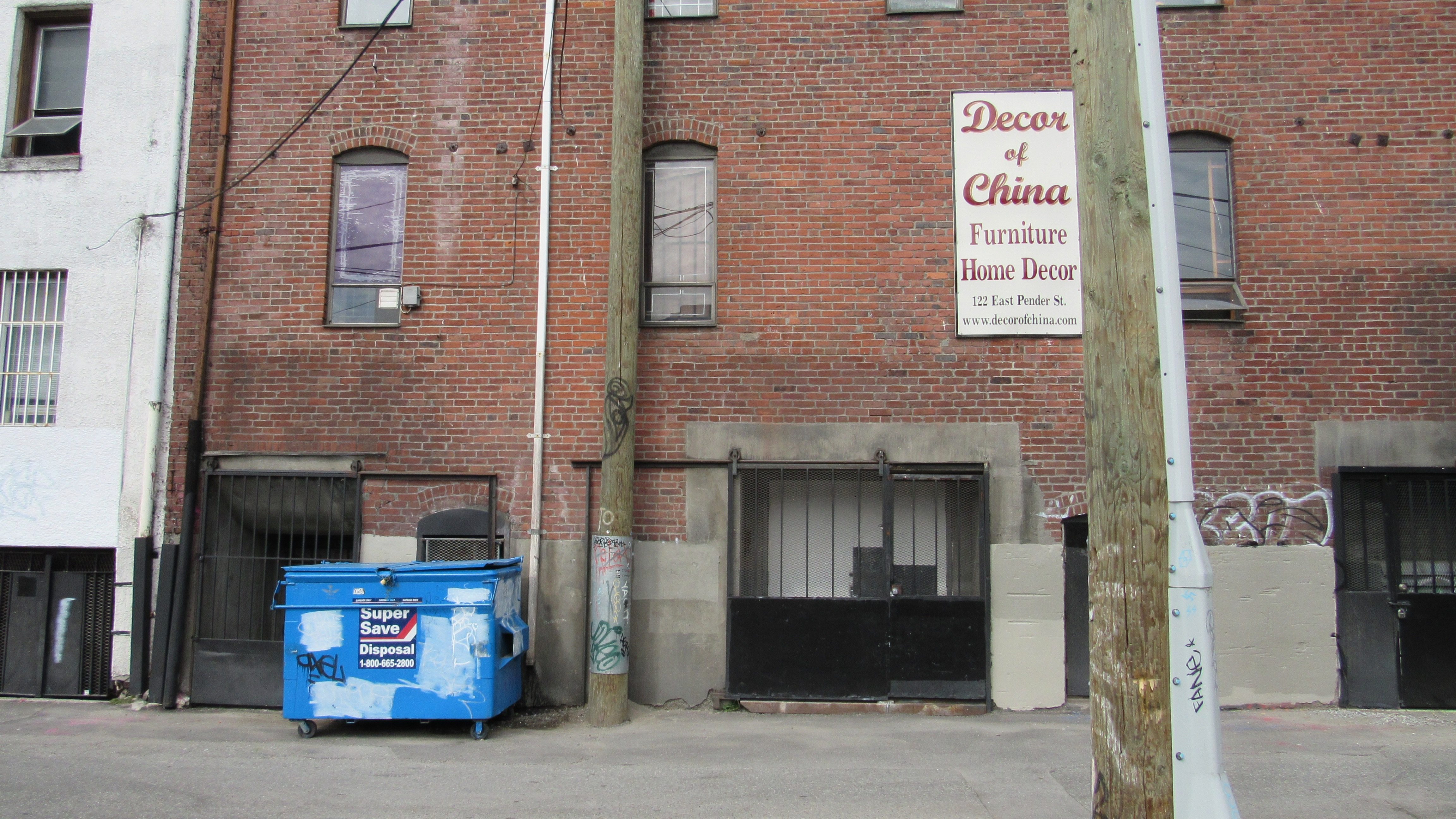 Behind Decor of China 122 E Pender St, Vancouver
